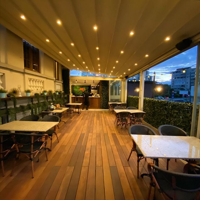 Pentru o experiență completă, vă puteți retrage pe terasa noastră încântătoare, unde vă veți bucura de masa servita alaturi de cei dragi.